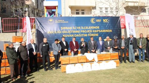 Şırnak'ta Arı Kovanı Dağıtımı Töreni Düzenlendi Şırnak'ta, Tarım ve Orman Bakanlığı Hayvancılık Genel Müdürlüğü, Şırnak Valiliği ve İl Özel İdaresi işbirliğiyle gerçekleştirilen "Arıcılığı Geliştirme Projesi" kapsamında 4 bin 600 arı kovanı ve ekipmanı üreticilere dağıtıldı. Yüzde 70 hibe ile sağlanan…