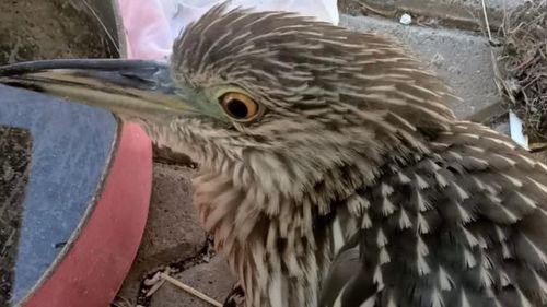 Şırnak'ta yaralı bulunan gece balıkçıl kuşu, tedavi edilmek üzere acil müdahale merkezine götürüldü.