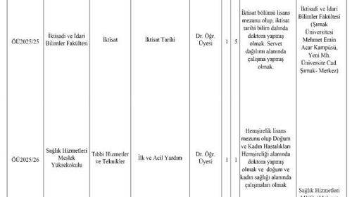 Şırnak Üniversitesi'nin 17 Aralık 2025 kadro ilanları: Öne çıkan özel şartlar