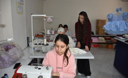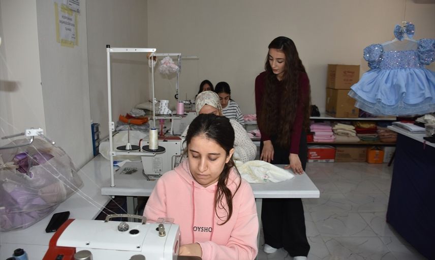 Şırnak'ın Cizre ilçesinde yaşayan 20 yaşındaki Azize Ergün, devlet desteği sayesinde çocuk kıyafetleri üretiyor. Küçük ve Orta Ölçekli İşletmeleri Geliştirme ve Destekleme İdaresi Başkanlığından (KOSGEB) aldığı makine desteği ile atölye açan Ergün, 0-14 yaş arasındaki kız çocukları için ürettiği abiyeleri hem internet üzerinden hem de mağazasında satıyor.