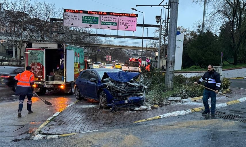 Şişli'de kaldırımdaki direğe çarpan araçtaki 2 kişi yaralandı.