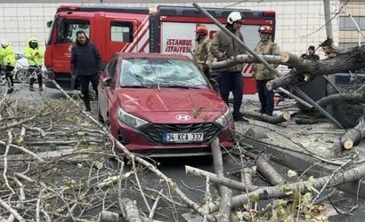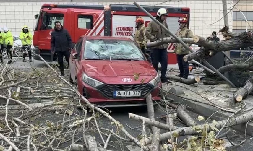 İstanbul'da etkili olan lodos nedeniyle, Şişli Esentepe Mahallesi Harman 1 Sokak'ta saat 15.00 sıralarında park halindeki bir aracın üzerine ağaç devrildi.