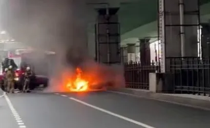ŞİŞLİ'DE SEYİR HALİNDEYKEN MOTOR KISMINDAN ALEV ALAN OTOMOBİL, İTFAİYENİN MÜDAHALESİYLE SÖNDÜRÜLDÜ