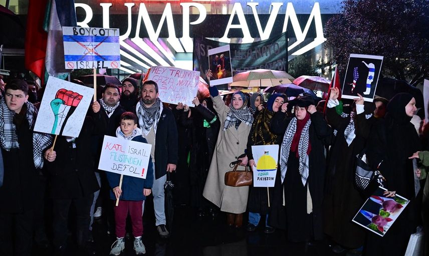 Özgürlük Nöbeti Platformu üyeleri, ABD Başkanı Donald Trump'ın Gazze'yi "devralma" ve Filistinlileri zorla yerinden etme planını protesto etti. Şişli'deki Trump Towers'ın önünde toplanan gruptakiler, Filistin bayrakları ve çeşitli dövizler taşıyarak "Hamas'a selam, direnişe devam" ve "Kahrolsun siyonist emperyalizm" sloganları attı.