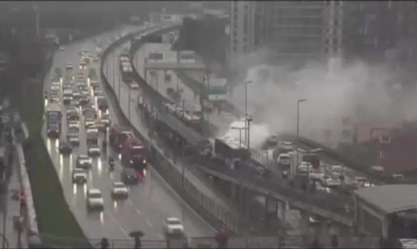Şişli'de metrobüsün motor kısmında yangın çıktı