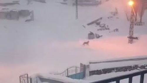 Sivas Altınyayla'ya bağlı Kızılhüyük köyünde aç kalan kurtlar köylere inip bazı köpekleri telef etti; olay cep telefonu kamerasına yansıdı.