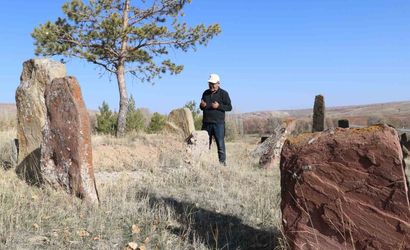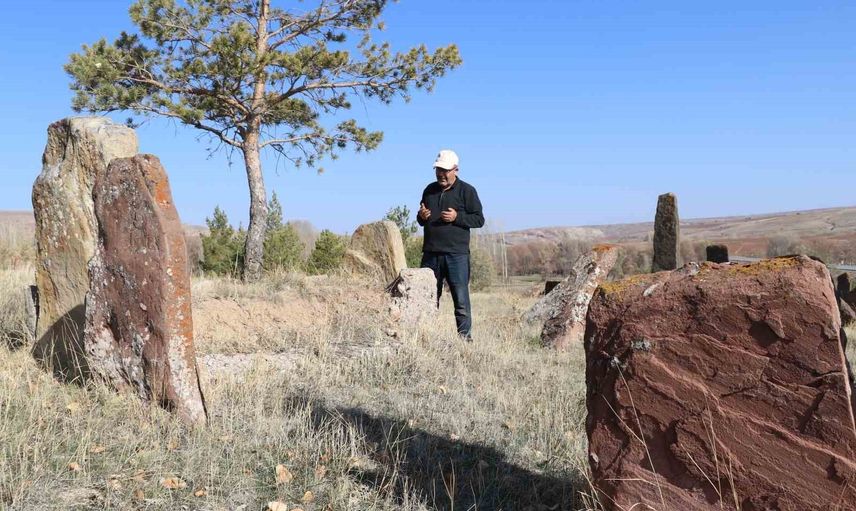Sivas Karayün'de 400 yıllık mezarlıkta Orhun Kitabelerini andıran yazısız dev mezar taşları