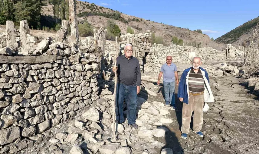 SİVAS'IN HAFİK İLÇESİNDE PUSAT-ÖZEN BARAJI'NIN YAPIMIYLA SULAR ALTINDA KALAN ASIRLIK KÖY, YAŞANAN KURAKLIKLA BİRLİKTE BARAJ SULARININ ÇEKİLMESİYLE 14 YIL SONRA YENİDEN GÜN YÜZÜNE ÇIKMIŞTI. KARLARIN ERİMESİYLE KÖY TEKRAR SULARA GÖMÜLDÜ.