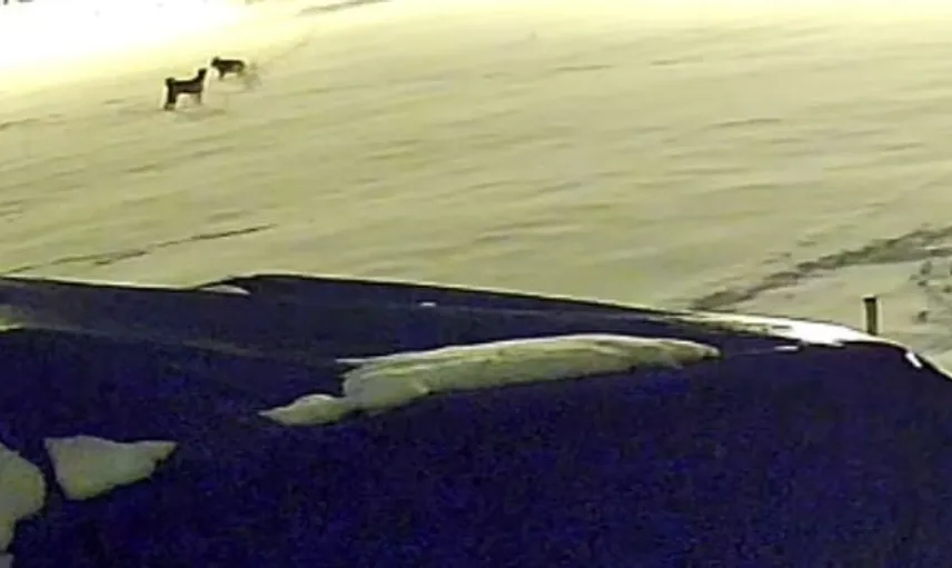 Görüntülerde, çiftliğin yakınlarına inen bir kurdu fark eden köpeğin tasmasından sıyrılarak dışarı çıktığı görülüyor. İlk kurdun etrafında dolaşmasının ardından, görüntüye giren diğer kurtlar köpeğe saldırıyor. Köpeğin çiftliğe kaçma girişimi başarısız olurken, saldırı sonucunda köpek telef oldu ve geriye yalnızca postu kaldı.