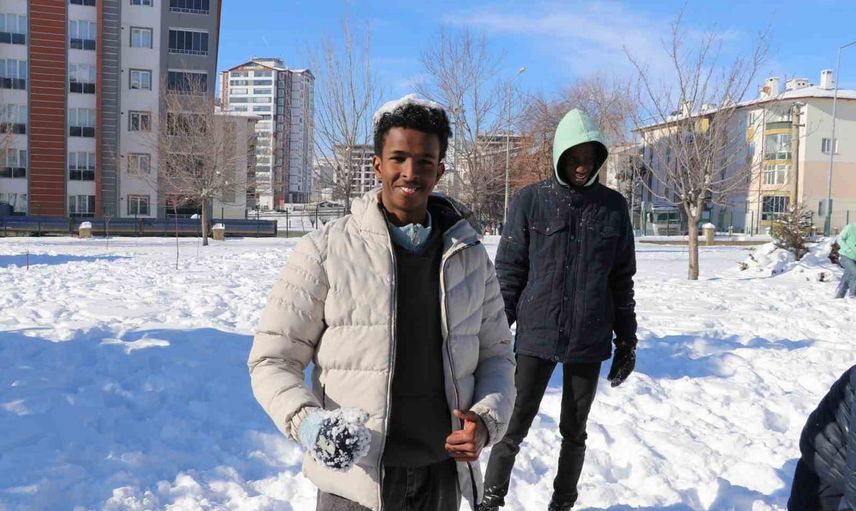 Sivas'ta Afrikalı öğrenciler ilk kez karla tanıştı