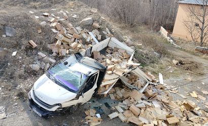M.E. yönetimindeki 28 AS 697 plakalı petek bal yüklü kamyonet, Üçyol Kavşağı'nda istinat duvarını aşarak devrildi. Kazanın ardından kamyonetteki petek ballar etrafa saçıldı.