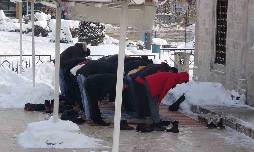 Kale Camisinde camiye sığmayan cemaat, alan yetersizliği nedeniyle namazlarını açık alanda, sıfırın altında 10 derece soğukta kıldı. Camide yer kalmaması nedeniyle dışarıda namaz kılanlar, soğuk koşullara rağmen toplu ibadeti tercih etti.