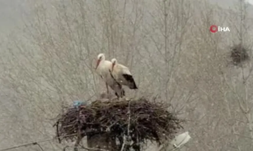 Görüntüler, erken gelen göçmen leyleklerin beklenmedik hava koşullarına verdikleri tepkiyi yansıtıyor.