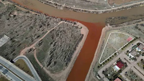 Sivas'ta Fadlum Çayı Kızıl Renge Bürünerek Kızılırmak'ı Renklendirdi