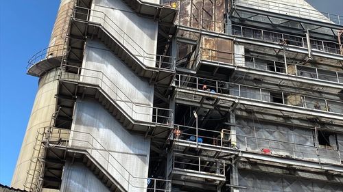 Sivas'ın Kangal ilçesindeki Hamal Köyü mevkisindeki Kangal Termik Santrali'nin bacasında yangın çıktı; itfaiye, sağlık ve jandarma ekipleri müdahale ediyor.