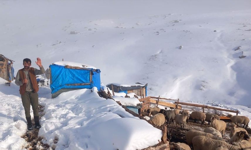 Sivas'ın Koyulhisar ilçesinde karın etkili olduğu yaylada mahsur kalan çoban ve 70 küçükbaş hayvana İl Özel İdaresi ekiplerince ulaşıldı.