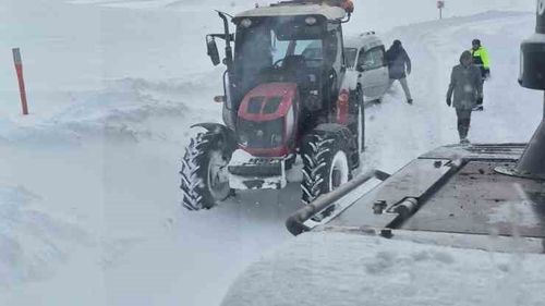 Sivas'ta yoğun kar ve tipi nedeniyle Altınyayla-Kangal yolunda mahsur kalan araçlar, karla mücadele ekipleri tarafından iş makineleriyle kurtarıldı.