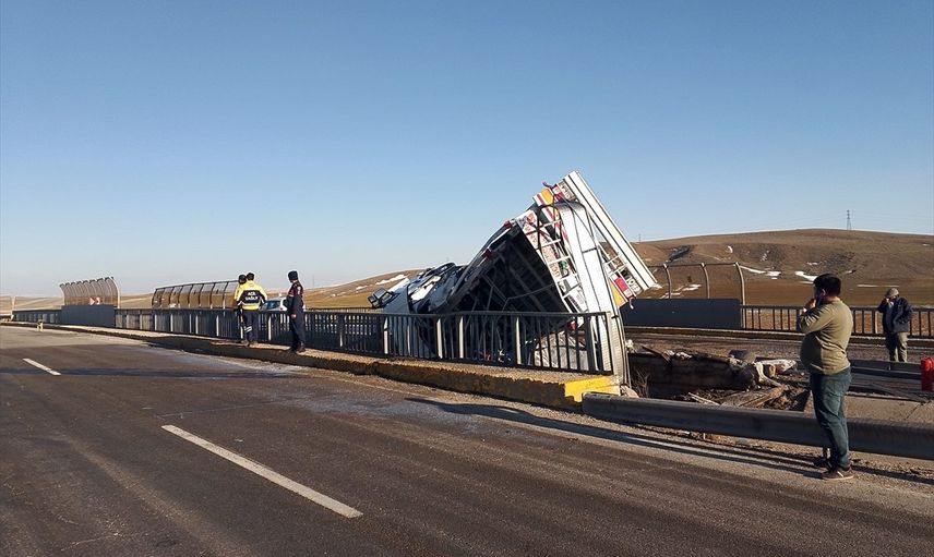 Sivas'ın Şarkışla ilçesinde köprü bariyerlerine çarpan tırın sürücüsü yaşamını yitirdi.