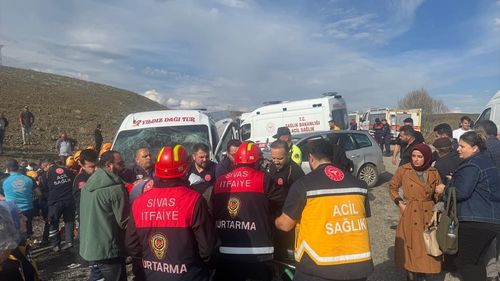 Sivas'ta öğretmenleri taşıyan minibüs ile otomobilin çarpışması sonucu 15 kişi yaralandı.