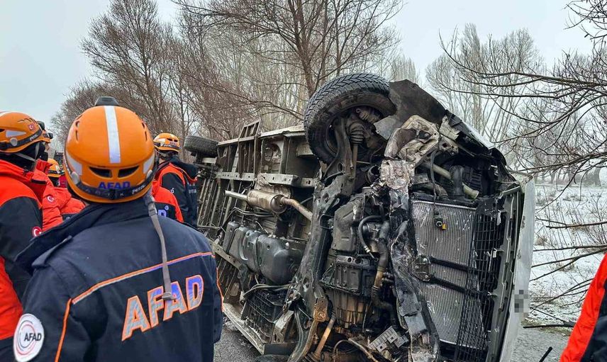 Sivas'ta okul servisi buzlanma nedeniyle yan yattı: 14 öğrenci ve sürücü yaralandı
