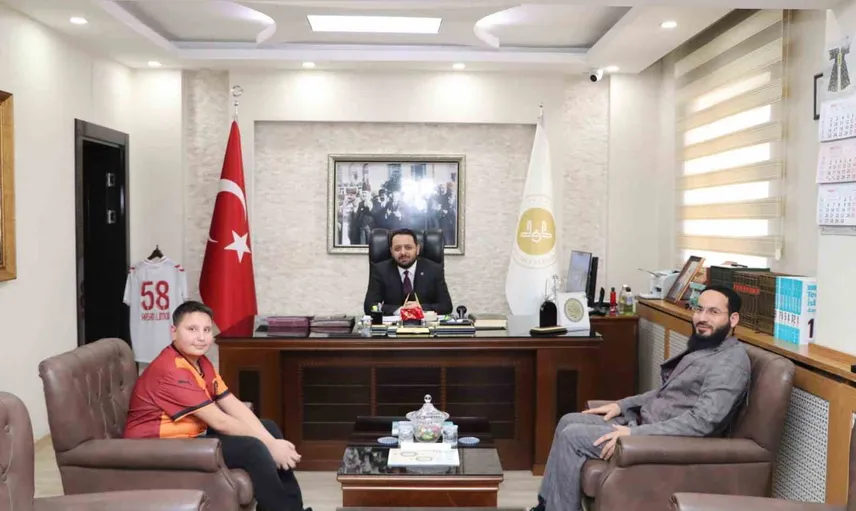 İl Müftüsü Hasan Limon, Enes'i tebrik ederek kendisine hediye takdim etti.