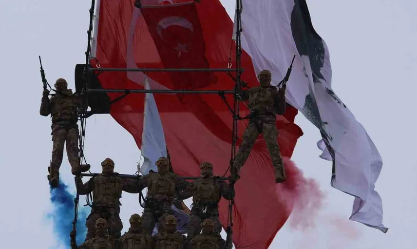 Kutlama programı kortej geçişiyle devam etti; İl Emniyet Müdürlüğü araçları İstasyon Caddesi üzerinde vatandaşları selamladı. Programın görsel odak noktası ise özel harekat ekibinin Sikorsky helikopter üzerinden Türk bayrağı açtığı gösteri oldu. Kent meydanındaki bu uygulama, alandaki izleyiciler tarafından takdirle karşılandı ve birçok kişi gösteriyi cep telefonlarıyla kaydetti.