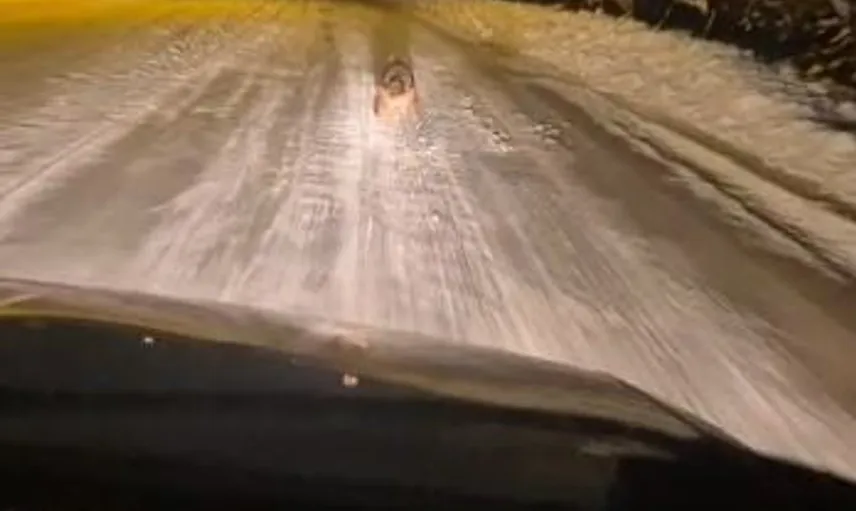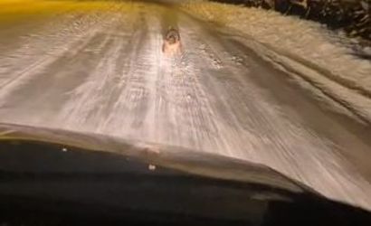 Kara yolunda koşarken kaydedildi, bölge halkı tedirgin