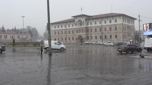 Sivas'ta sabah yağmuru ilerleyen saatlerde kar yağışına dönüştü; sıcaklık -2°C'ye kadar düştü ve kent merkezinde kartpostallık manzaralar oluştu.