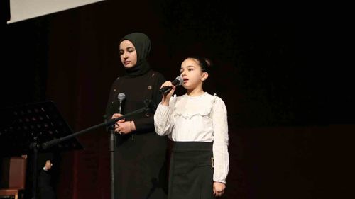 Sivas'ta Mehmetçik İlkokulu'nun Fidan Yazıcıoğlu Kültür Merkezi'nde öğrenciler, veliler ve öğretmenler Yavuz Bülent Bakiler'in eserlerini seslendirdi.