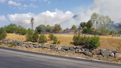 Sivas'ın Zara ilçesi Bozkır köyü Bahçe mezrası yakınlarındaki ağaçlık alanda çıkan yangını itfaiye, Orman Müdürlüğü ve jandarma ekipleri söndürme çalışmalarını sürdürüyor.