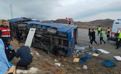 Sivas Zara'da cezaevi nakil aracı devrildi