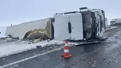 Siverek-Şanlıurfa kara yolunda tır devrildi; ulaşım tek şeritten kontrollü sağlanıyor