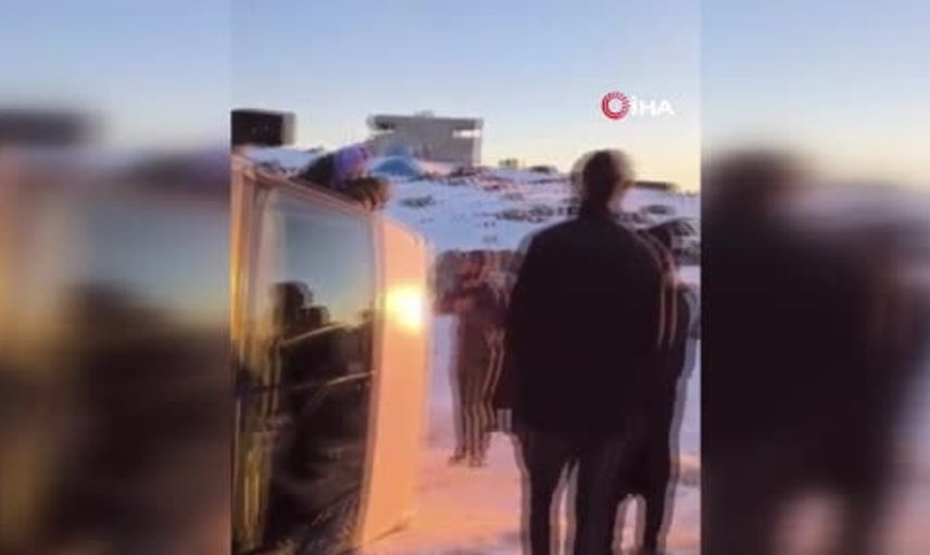 Karda devrilen minibüsteki yolcuları vatandaşlar kurtardı