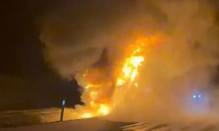 ŞANLIURFA’NIN SİVEREK İLÇESİNDE SEYİR HALİNDEYKEN ALEV ALAN TIR, KISA SÜREDE TAMAMEN YANARAK KULLANILAMAZ HALE GELDİ. SÜRÜCÜ, SON ANDA ARAÇTAN ATLAYARAK KURTULDU.