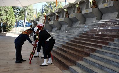 Protokol üyelerinin karşılanmasının ardından heyet, Ertuğrul Gazi Türbesi'ni ziyaret etti. Ardından Türk Büyükleri Anıtı'na çelenk sunuldu, saygı duruşunda bulunuldu ve İstiklal Marşı okundu.