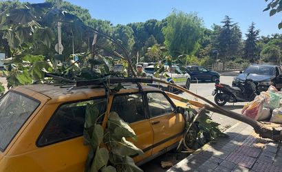 Aydın'ın Söke ilçesinde, kırılan bir ağaç dalı park halindeki bir otomobilin üzerine devrildi. Olayda yaralanan olmazken, araçta maddi hasar meydana geldi.