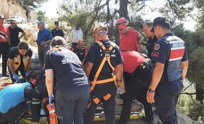 Aydın'ın Söke ilçesinde uçurumdan düşerek yaralanan arıcı, ekiplerin çalışmasıyla kurtarıldı.