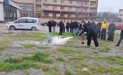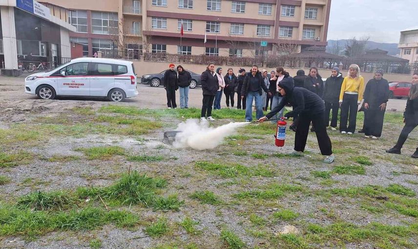 Söke'de öğrenci ve personele uygulamalı yangın eğitimi