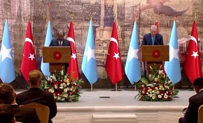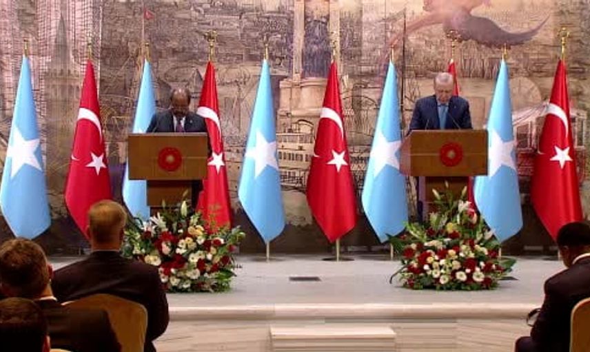Somali Cumhurbaşkanı Hasan Şeyh Mahmud, Cumhurbaşkanı Recep Tayyip Erdoğan ile Dolmabahçe Çalışma Ofisi’nde gerçekleştirdiği görüşmenin ardından yaptığı basın açıklamasında, Türkiye’nin Somali’ye verdiği desteğe teşekkür etti ve ülkesinin egemenlik haklarının korunmasının önemine vurgu yaptı.