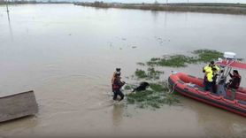 Karacabey'de su taşkınında mahsur kalan iki köpek Bursa Büyükşehir ekiplerince kurtarıldı