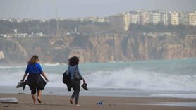 Antalya'da bir haftalık yağışın ardından Konyaaltı Sahili'ne akın