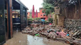 Küçükçekmece'de sağanak sonrası yol çöktü; A/35 nolu minibüs belediye ekiplerince çıkarıldı