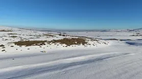 Ahlat’ta karla kaplı arazide yiyecek arayan tilki dronla görüntülendi
