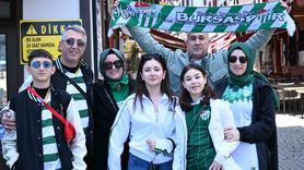 Ankara Demirspor-Bursaspor maçı için gelen on binlerce Bursaspor taraftarı, Prof. Dr. Fethi Heper Stadyumu ve kent merkezinde tezahüratlarla bekleyişe geçti.