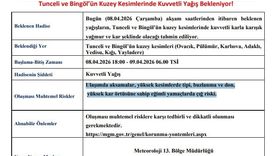 Meteoroloji 13. Bölge Müdürlüğü’nden Tunceli ve Bingöl için kuvvetli yağış uyarısı