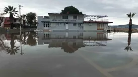 Burhaniye'de sağanak yolları göle çevirdi, Ören sahilinde deniz rengi değişti
