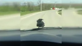 Düzce'de karga ön cam sileceğine kondu, sürücünün omzuna geçti