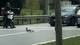 İstanbul Sancaktepe'de sürücü, ördek ailesinin güvenli geçişi için trafiği durdurdu
