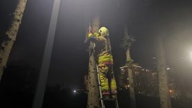 İskenderun’da ağaçta mahsur kalan kedi itfaiye ekipleri tarafından kurtarıldı
