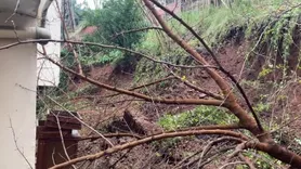 Bursa'da yoğun yağış sonrası istinat duvarı çöktü, ağaçlar binaya devrildi
